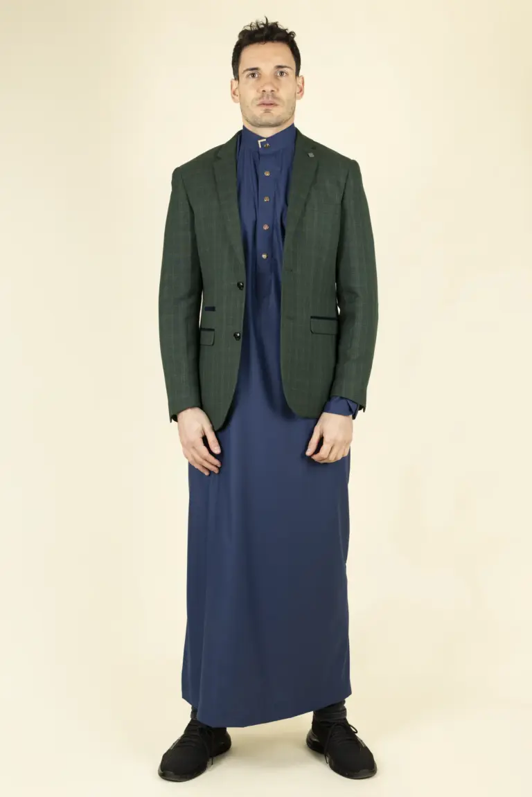 Navy blue blazer with a checked pattern, offering a sharp tailored fit and premium quality fabric for a polished, elegant
